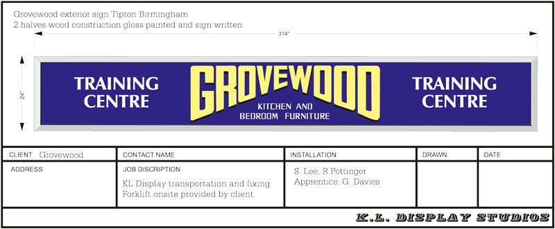 Grovewood Sign Tipton Birmingham in the heart of the Black Country where it is black by day red by night © K.L. Display 1974 GRD