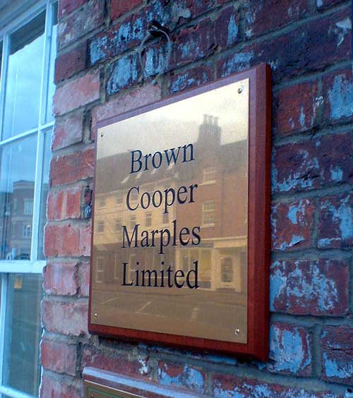 Brass Plate on Mahogany Plaque