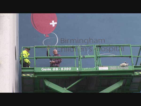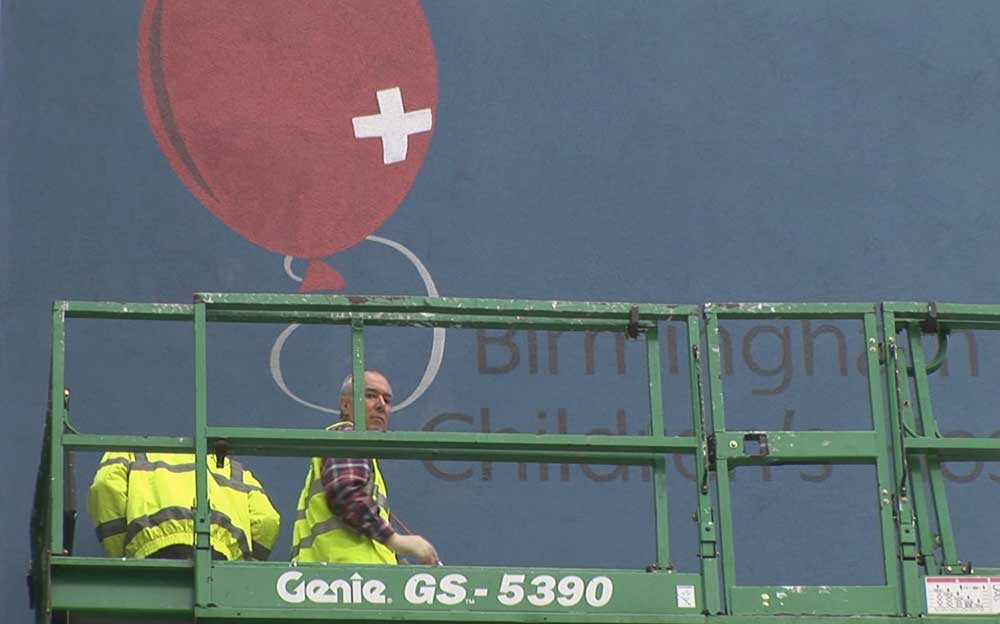 Gareth Davies signwrites the new Birmingham Childrens Hospital in 2007 still using the same paint today in 2022.