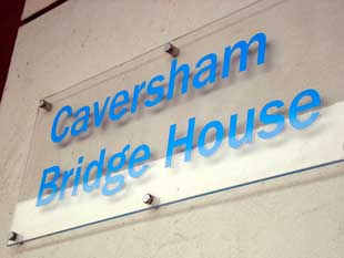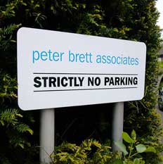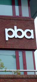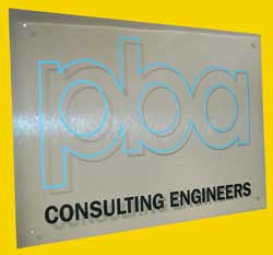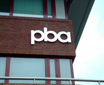 the PBA exterior sign at their Reading Head Office, polished stainless