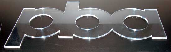 desk have clear perspex letters with polished edges faced with aluminium