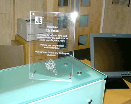 their new corporate logo etched onto glass so were very pleased when