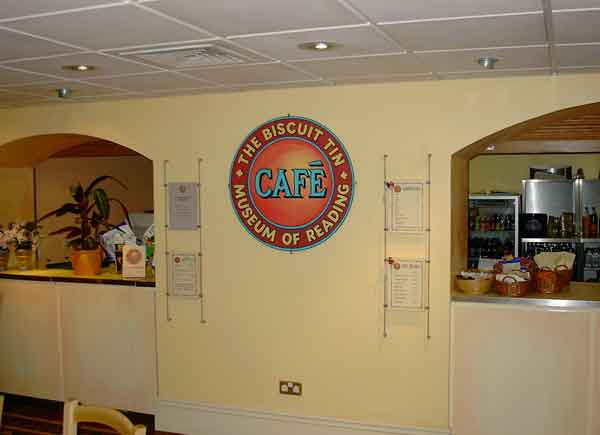 Town council, The Biscuit Tin Café exterior A Board supplied